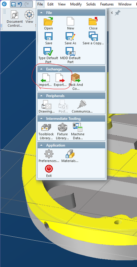 First select the solid model you wish to reuse. Then in the file menu select export. Now select the solid type you want to use, STEP is a good one if you have no preference. Name the exported file with a name you need and click done. Now when you want to bring that back into another GibbsCAM program you can use File - Import.